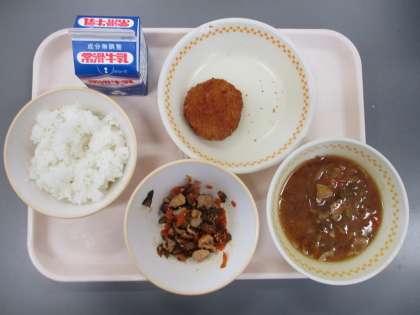 今日の献立は ごはん ぎゅうにゅう ふきごはんのぐ れんこんサンドフライ ぶたじる です