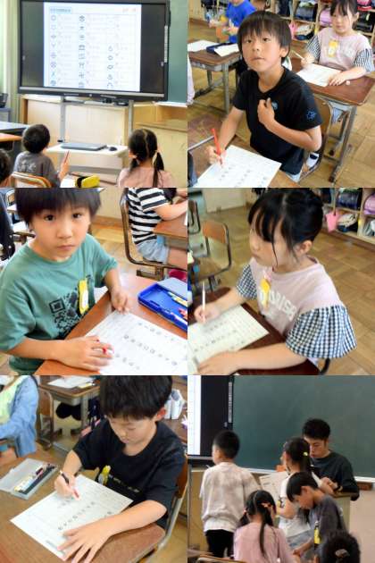 5月17日 3年社会「わたしたちの住んでいる市のようす」 公開日 2024/05/17 更新日 2024/05/17 3年生 地図記号の プリント 電子黒板で 正解を確認して ○をつけています 先生に 見てもらうんだ !