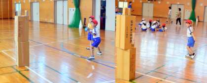 今度は ダンボールの的に向かって・・・