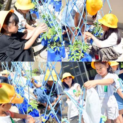 6月4日 2年生活「★野さいを そだてよう(1)」 公開日 2024/06/04 更新日 2024/06/04 2年生 「見て! 大きくなったよ!」 毎日 水やりを 忘れずに やっている2年生 もっと大きくなるように 草を取ったり 間引いたり 早く 実がなるといいね