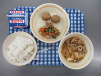 今日の献立はごはん ぎゅうにゅうレバーいりつくねぶたにくとだいこんのにものやさい...