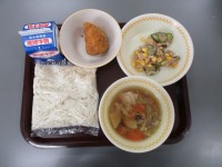 今日の献立はソフトめん ぎゅうにゅうわふうかけじるだいこんサラダミニきなこあげパ...