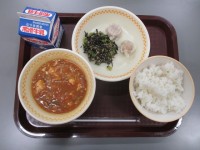 今日の献立はごはん ぎゅうにゅうしゅうまいマーボーどうふひじきのちゅうかあえ で...