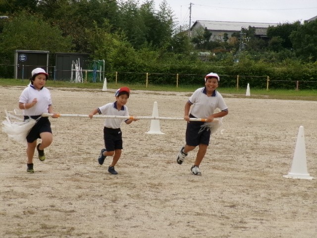 3・4年生が運動会の練習を行いました。3・4年生種目「台風の目」のルールを確認したり、実際に競技してみて作戦を立てたりしました。