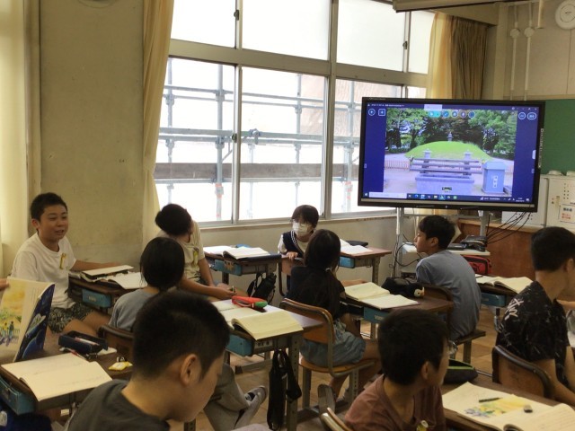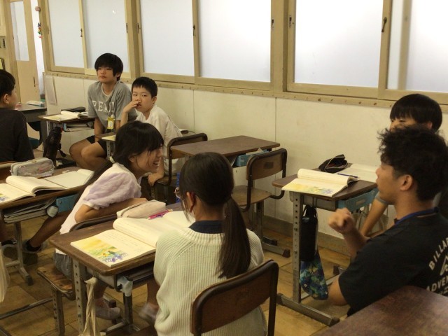 「たすねびと」を読んで、自分たちの問題を解決するために、グループで意見交換しています。さらに全体で考えを共有しています。