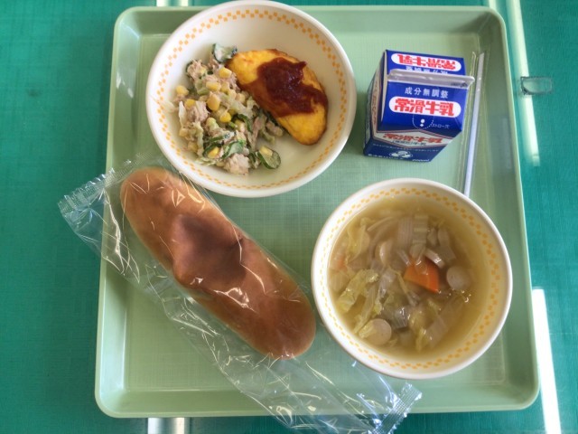 ロールパン・牛乳・オムレツのトマトソースかけ・ポトフ・ツナサラダ