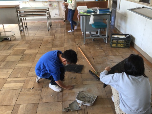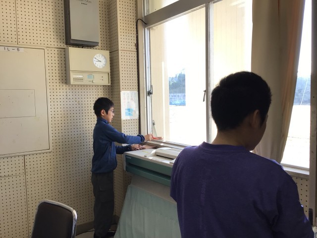 家庭科の学習で、生活しやすくするためにどうしたらよいか考えました。今日は、校内のいろいろな場所の汚れを落とし、きれいにしていました。放送室の窓ぎわや、図書館、教室のエアコンなど、普段なかなか掃除できない場所を自分たちなりに考えて清掃していました。