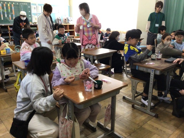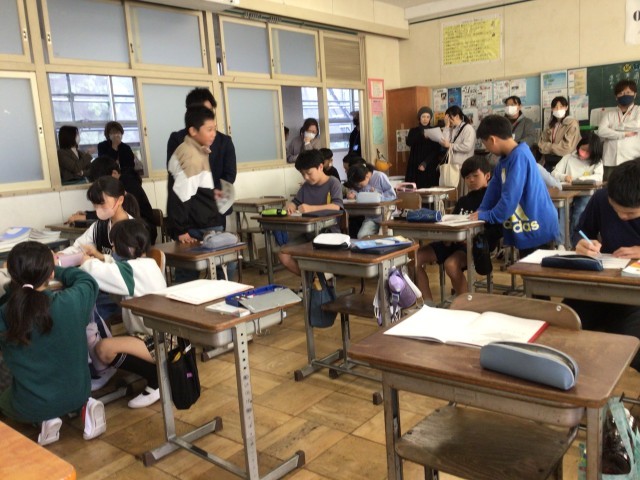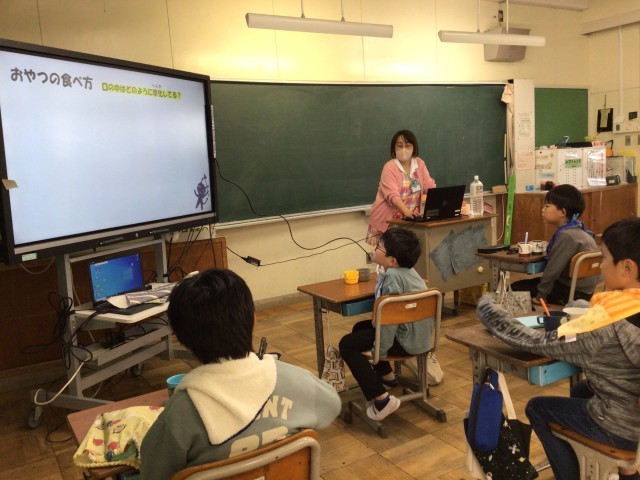 授業の様子を参観していただきました。各学年、歯の健康についてお話を聞き、染め出しを行いました。