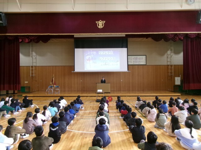 2学期も終わりを迎え、今日は終業式です。熱中症対策や感染予防で全校で集まるのは、2学期始業式以来ですが、しっかり集合整列ができました。冬休みも「レファレンス」「リフレクト」を意識して過ごして充実した冬休みを過ごしてほしいと伝えました。