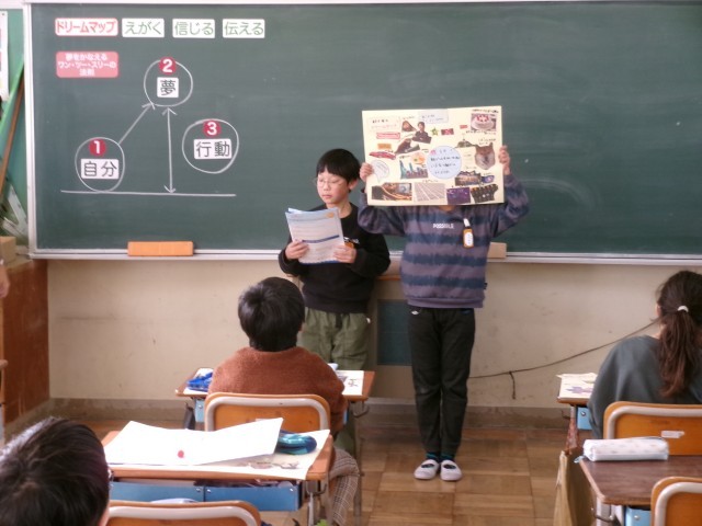 4年生がドリームマップを作成しました。午前中にマップを作成し、午後からそれぞれのマップをもとに発表会です。自分の夢を堂々と語る姿がとても頼もしいです。