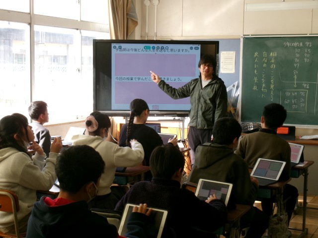 道徳です。「手品師」という教材を通して、「誠実」について深く考えます。主人公の手品師の取った行動について、多角的、多面的に考え意見を出し合っています。