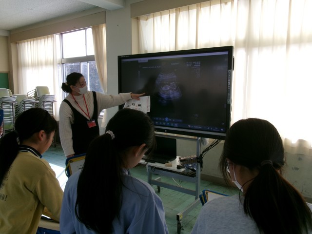 理科です。「人のたんじょう」の学習です。保健センターの方や妊婦さんをゲストティーチャーにお招きして、人が誕生する過程を教えていただいたり、エコー写真を見せていただいたりしながら、人の誕生ついて調べています。