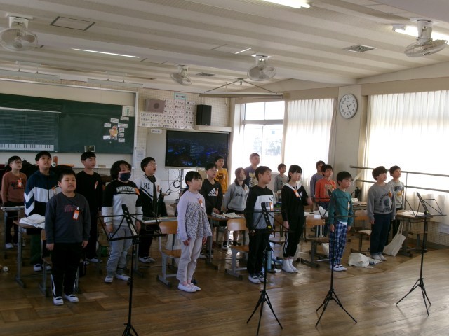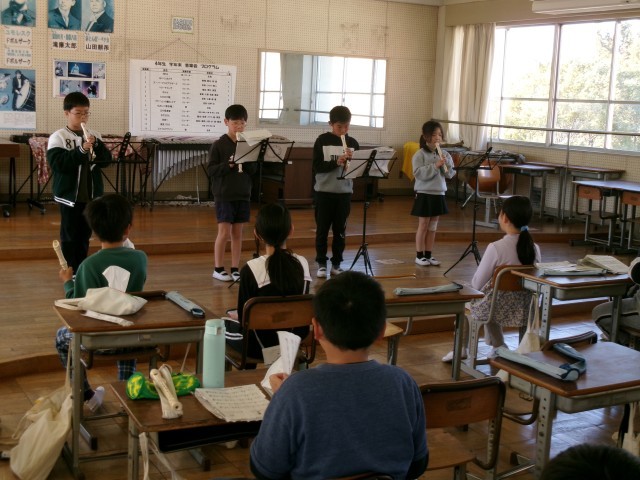 音楽です。4年生も学年末音楽祭を行いました。全員合唱で歌った「もみじ」の二部合唱ではきれいなハーモニーを奏でることができました。リコーダーも上達ぶりが伝わってくる演奏でした。