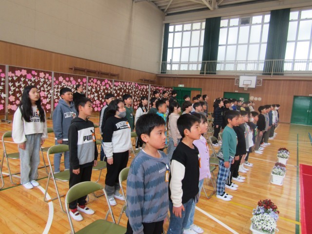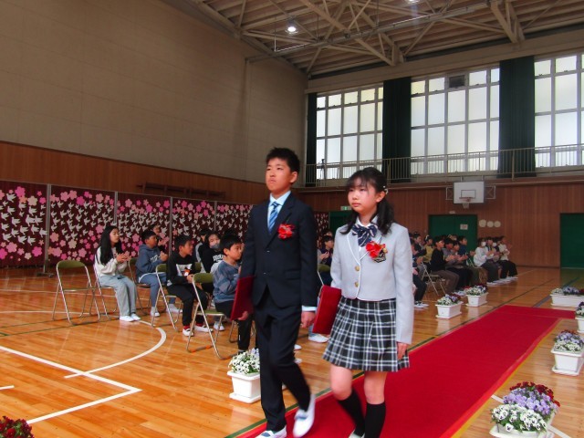 卒業生と在校生の気持ちのこもった呼びかけと歌に、体育館があたたかい雰囲気に包まれました。堂々と胸をはって巣立っていく姿は、6年間の小学校生活がの価値あるものであったことを物語っています。