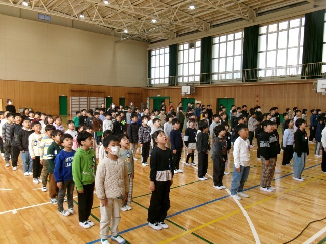 今日は令和8年度最後の登校日、修了式です。修了証授与、式辞、校歌斉唱を滞りなく終えることができました。よい姿勢、よい返事、元気な歌声で有終の美を飾ることができました。5年生がもう最高学年の顔つきになっていて、頼もしさを感じます。