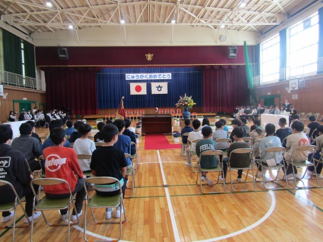 体育館で入学式が行われました。22名の新入生を、新5・6年生、保護者、教職員、ご来賓が温かく迎えました。