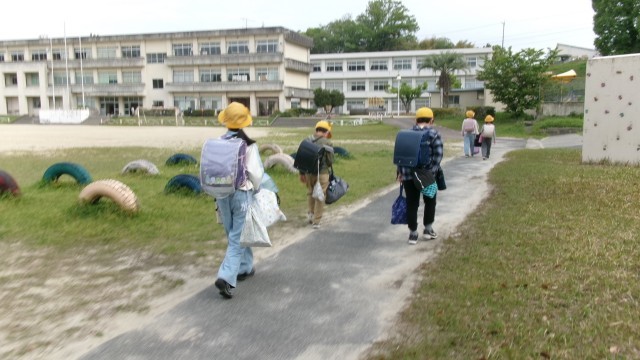 また、今日は週初めで、たくさんの荷物を持って登校する児童が多かったです。