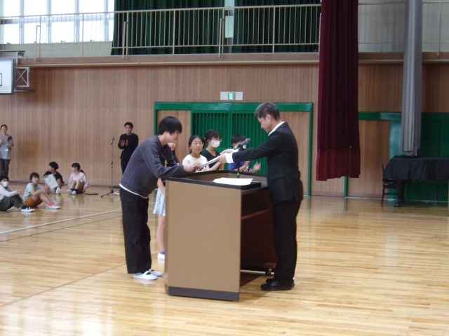 学級委員長と委員会の委員長の任命があり、校長先生から任命状が渡されました。