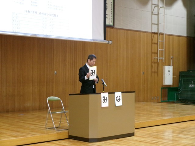 校長先生から、今年度の教育目標や南粕谷小教職員の紹介がありました。