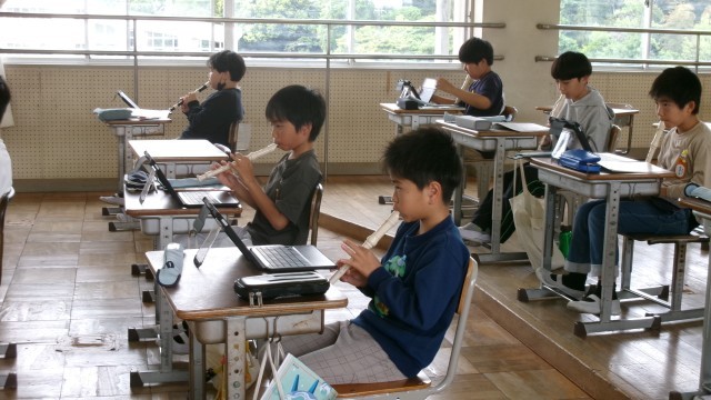 5年生は、音階を理解しながら、リコーダーの練習をしていました。