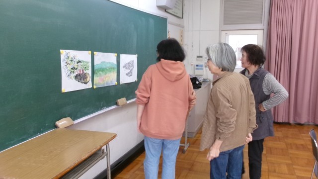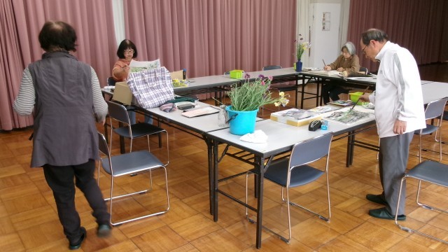 本日、中をのぞくと、年配の方々が「鮮やかな絵」を描いていました。