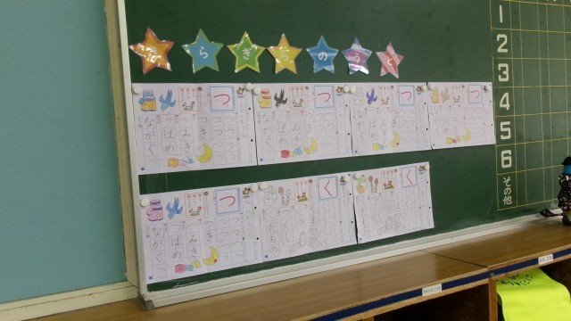 これまで練習したプリントが黒板に掲示され、さらに意欲をもって行っているようでした。