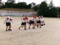 3・4年生が合同で運動会の練習です。今日は、並び方、入場・退場の仕方、ルールなどを確認して、競技のシミュレーションをしました。