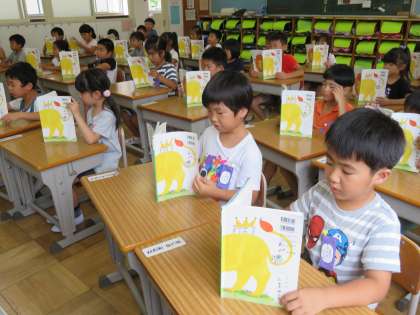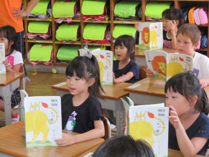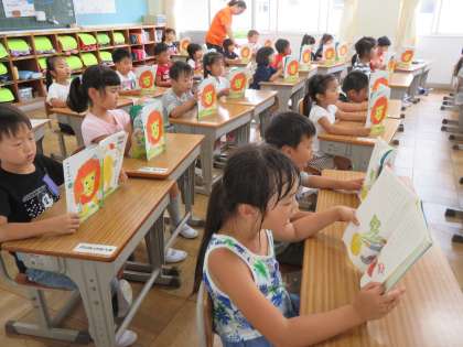 「おおきなかぶ」を全員で大きな声で、音読しました。どの子も一生懸命でした。1年生の子たち、かわいいですね。