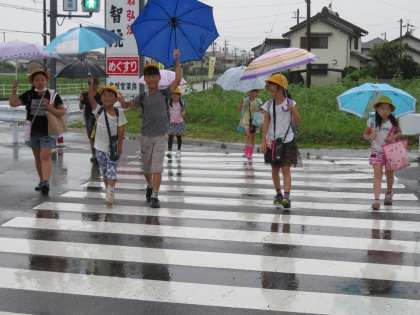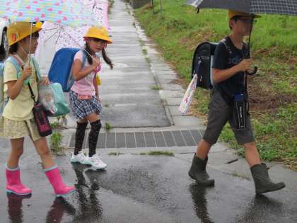湿度が高く、蒸し暑い日になりそうです。子どもたちは、いつものように重い荷物を持って登校します。