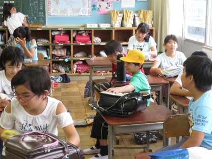 朝の会が始まるまでの時間です。友だちと、リラックスした時間を過ごします。
