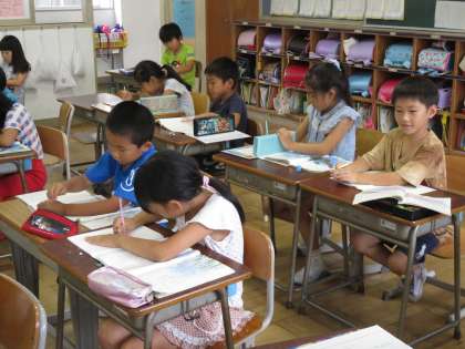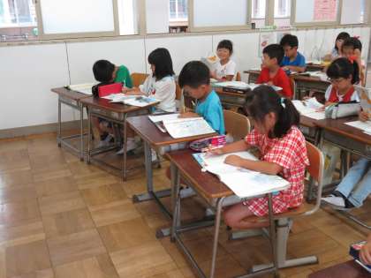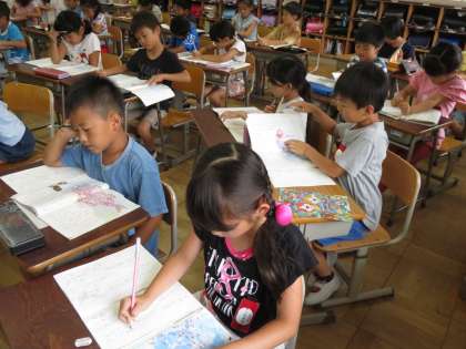 スイミーを読んで、気に入った箇所のクイズを作ります。一人一人真剣に考えていますが、どんなクイズができたでしょうか?2年生の保護者の皆様、お子様に聞いてみてください。