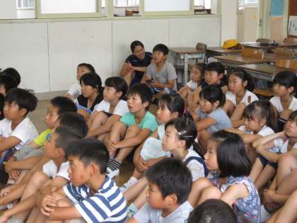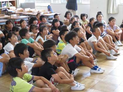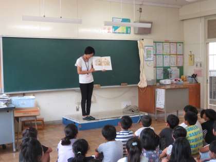 「たんぽぽ」のメンバーの方による読み聞かせがありました。3の1では、「うみべのハリー」という絵本を読んでいただきました。子どもたちは、真剣に聞き入っていました。
