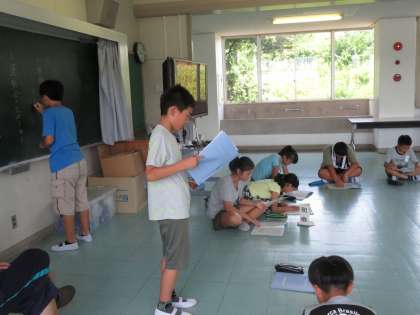 大放課に、臨時代表委員会が開催されました。議題は、ア 2学期の生活リズム点検、イ 運動会のスローガン、ウ そうじがんばり週間、エ 西日本豪雨災害復興支援募金活動についてでした。限られた時間で提案し、議事を進めていました。