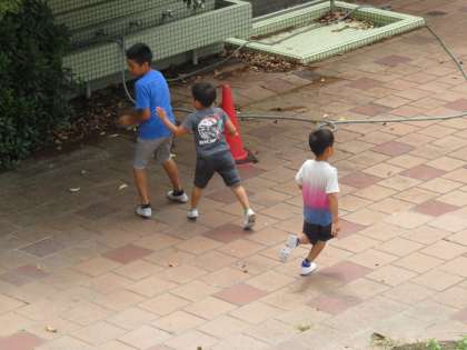 ペアの1年生と6年生が、さんさん広場で遊んでいます。ほほえましい光景を見せてくれた、優しい6年生のお兄さん・お姉さんに感謝です。