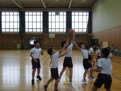 久しぶりのバスケットの練習。暑さも一段落し、子どもたちは楽しそうに活動していました。最後の練習は、ハーフコートでの5対5。試合形式の練習は、熱が入ります。