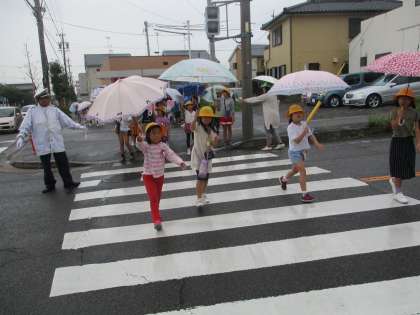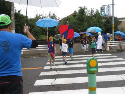 各横断歩道には、講師の方や先生が立ち、子どもたちの歩行訓練を見守りました。子どもたちは、1・6年、3・5年、2・4年のペアで、決められたコースを歩きました。今日、確認したこと、学んだことを生かし、自分で自分の安全を確保して欲しいと思います。