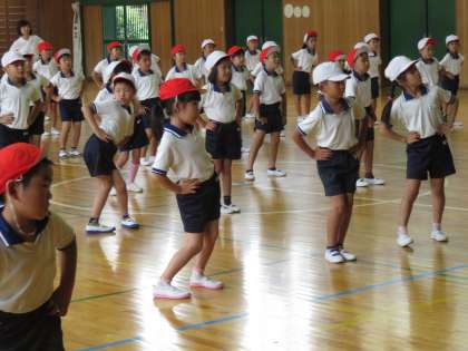 1・2年生は、合同運動会の種目「ドラえもん玉入れ」のダンスの練習をしています。動きを覚え、音楽に合わせて踊る姿は、本当にかわいらしいです。保護者の皆様、当日を楽しみにしていてください。