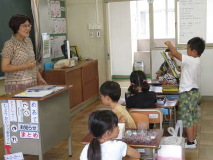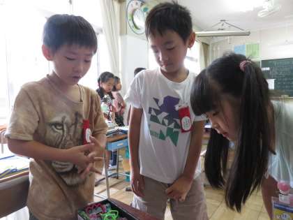 自分のお気に入りの物をすてきに見せる工夫をして、作品を作りました。出来上がった友だちの作品を見て、作品のいい所を話し合いました。友だちの作品をほめる発言がたくさん出る気持ちのよい授業でした。