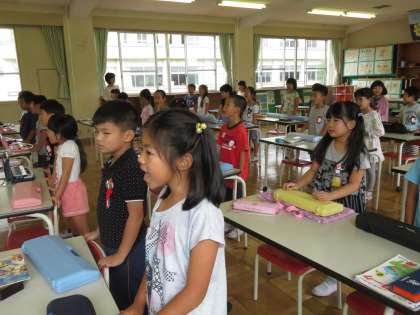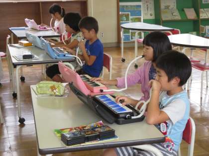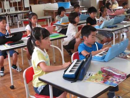 「朝の歌」を明るく元気よく歌い、授業が始まりました。次に、鍵盤ハーモニカで「エーデルワイス」を弾く練習をしました。今までにも練習をしているために、リズムよく弾いている子もいました。