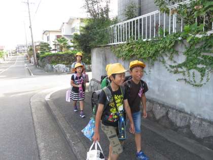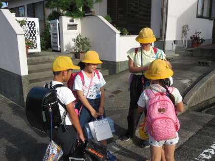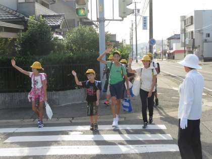 秋晴れのさわやかな中、子どもたちが登校してきます。今日は、気持ちよく学校生活が送れそうですね。