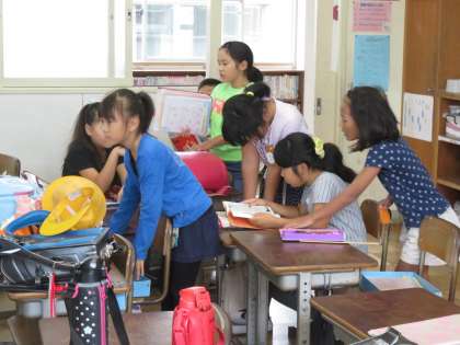 週の最終日の一日が始まりました。子どもたちは、教室で思い思いに過ごしています。