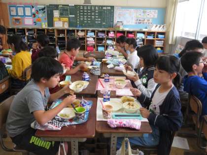 サラダがたくさん残っていましたが、みんなで少しずつ増やし、残食をなくしていきました。カレーは、もちろん残っていません。