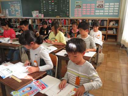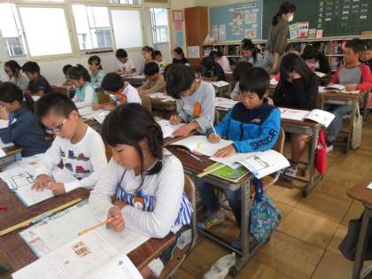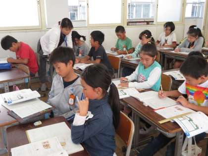 「多くの数をかけるときには、計算する順序をかえても、答えは同じです」ということを学習しました。練習問題に、真剣に取り組んでいました。