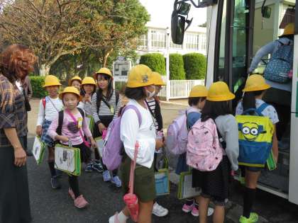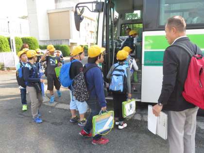 4年生が、消防署・浄水場・水の生活館に社会見学に出発しました。