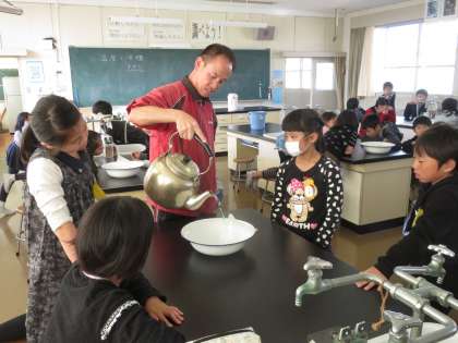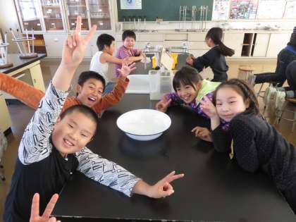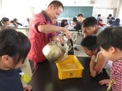 温度によって空気の入ったビニール袋の体積がどのように変わるかの実験をしました。担任の先生に、お湯を入れてもらい、ビニール袋の様子を観察しました。実験は楽しいです。