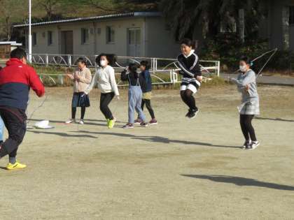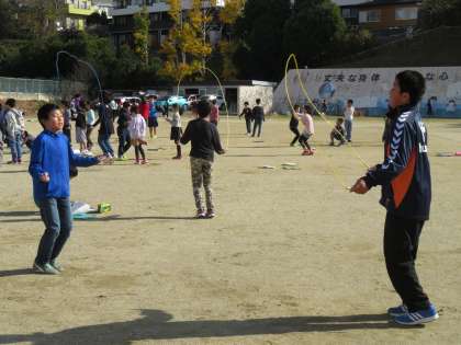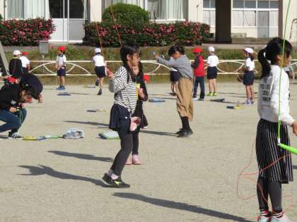 大放課になると、子どもたちが縄跳びを持って、運動場に集まってきます。縄跳びは全身運動です。子どもたちの発育に、体力向上になることを期待しています。