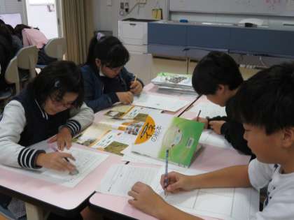 1学期から取り組んできた米づくりについて、まとめをします。インターネットや資料で調べたり、体験したことを思い出したりして、まとめの新聞をつくります。
