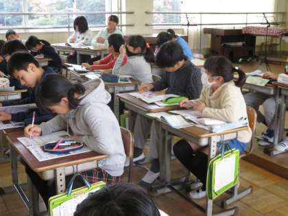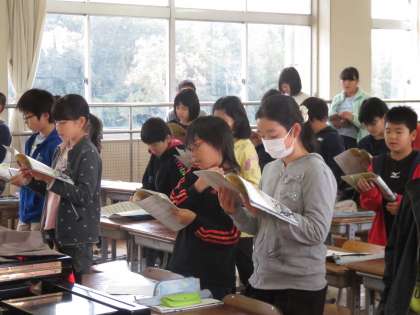 「冬げしき」を、拍の流れにのって表情豊かに歌うのが目標です。歌の後は、「風とケーナのロマンス」の歌の「ドレミ・・・」を音楽ノートに記入しました。