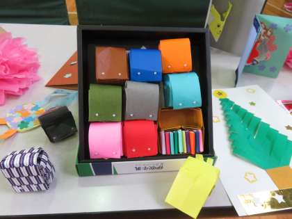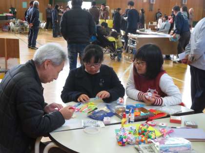 キャラクター折り紙のブースです。地域の方にも、小さい子どもたちにも、丁寧に教えていました。下の写真は、2人の子が作った作品です。間近で見ましたが、実に見事です。