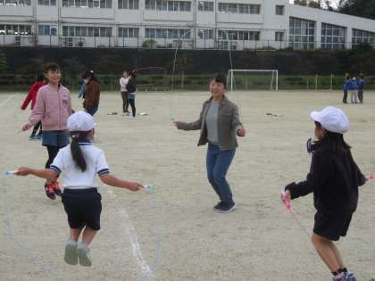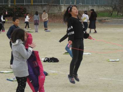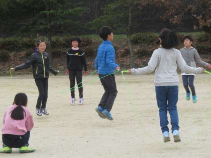 気温も低くとても寒い中、大放課には、子どもたちが縄跳びをしています。